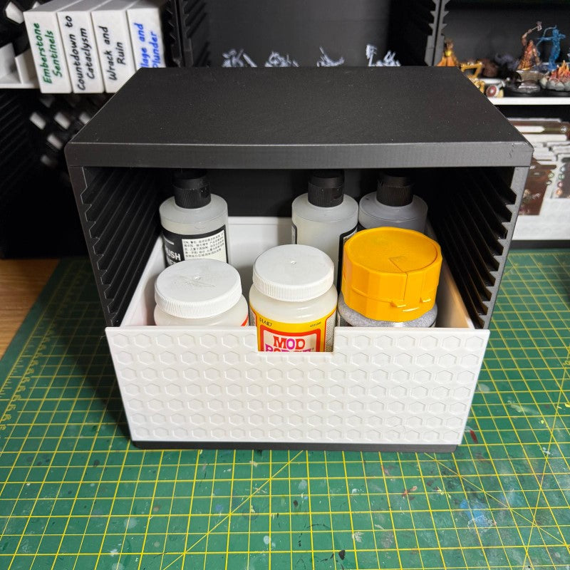 100mm Height Drawers: Larger than their counterparts, these are tailored for bulkier items like glue, sculpting tools, or even small project containers.